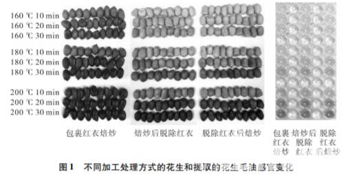 不同加工處理方式的花生及提取的花生毛油 的感官變化( 見圖 1)