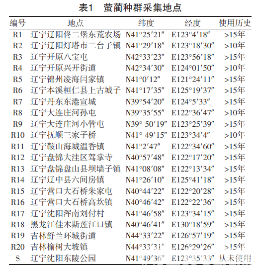 采自東北三省多年使用芐嘧磺隆的稻田里的螢藺 種子,具體地點(diǎn)及用藥歷史見表1。