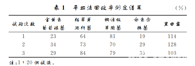 因為保婦康栓產(chǎn)品說明書中含莪術(shù)油,主 要 治 療 霉 菌 性陰道炎、老年性 陰 道 炎、宮 頸 糜 爛 等,說明此栓劑有一定 的抑菌作用,供試品溶液(1∶10)采用平皿法計數(shù),意 義 不 大。于是對前期供試品溶液(1∶20)采用平皿法計數(shù),無法 通過適用性檢查,回收率如表1所示。